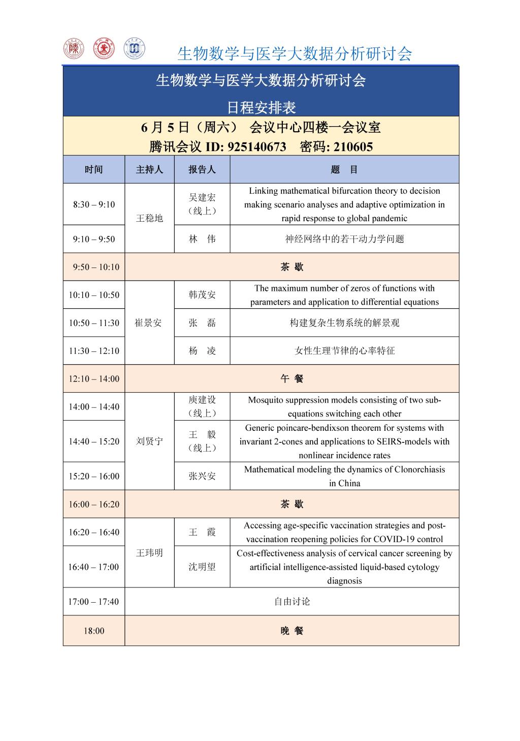 生物数学与医学大数据分析研讨会